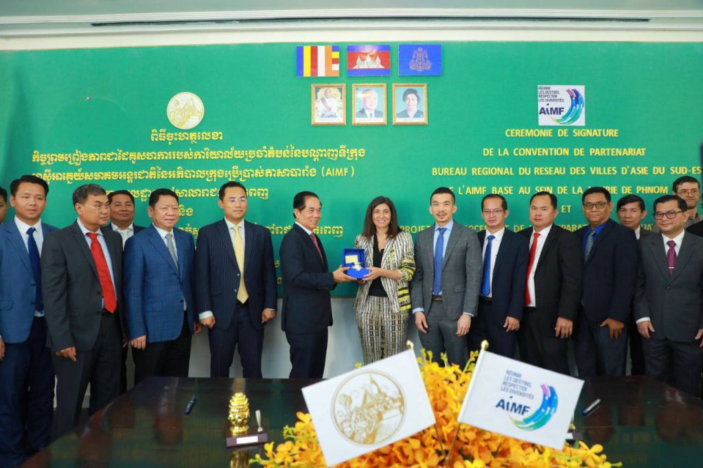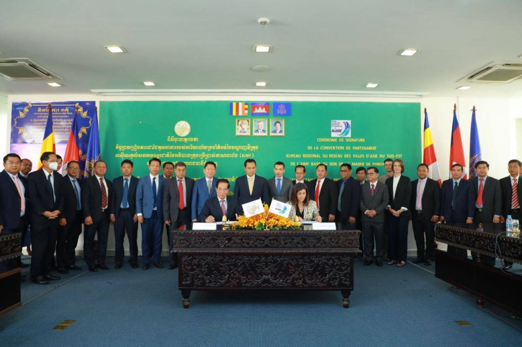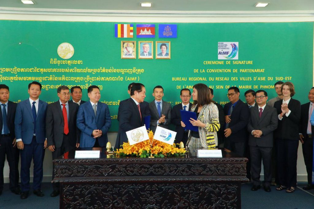 រដ្ឋបាលរាជធានីភ្នំពេញ និងសមាគមអន្តរជាតិ នៃអភិបាលក្រុងប្រើប្រាស់ភាសាបារាំង (AIMF) បានចុះហត្ថលេខាលើកិច្ចព្រមព្រៀងស្ដីពីជំនួយហិរញ្ញវត្ថុ និង ជំនួយបច្ចេកទេសក្នុងទំហំទឹកប្រាក់ចំនួន ១៤៣.៥០០,០០ អឺរ៉ូ ក្នុងគោលបំណងចូលរួមលើកកម្ពស់សមត្ថភាព អនុវត្តការងារមួយចំនួន ដូចជាការរៀបចំលំហសាធារណៈក្នុងទីក្រុង, ការកែលម្អអនាម័យ និងការគ្រប់គ្រងកែច្នៃសំណល់ភក់បង្គន់ការគ្រប់គ្រងហានិភ័យ និងការត្រៀមខ្លួនទល់នឹងគ្រោះទឹកជំនន់៕