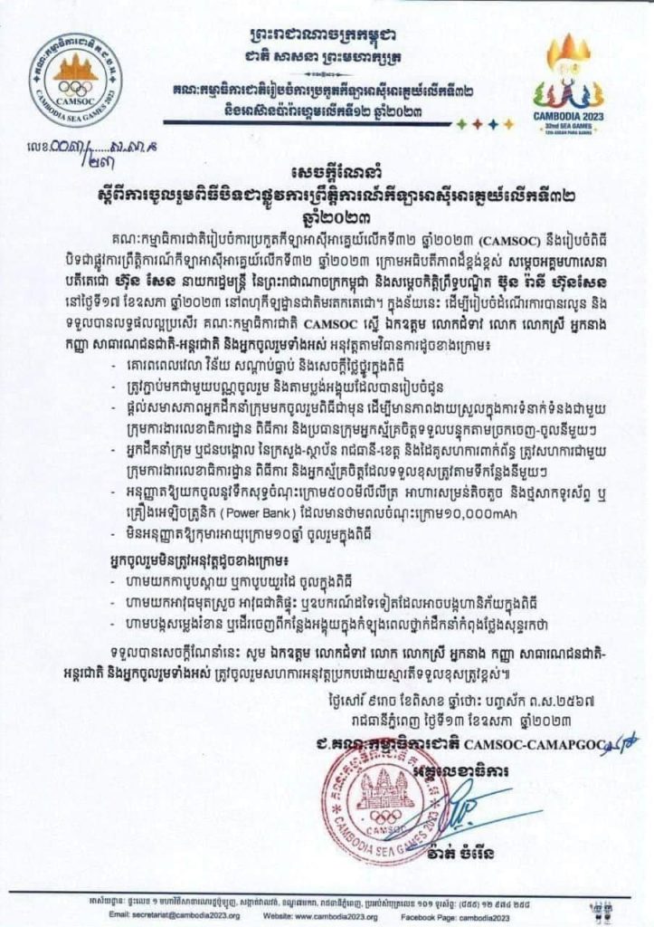 អ្នកចូលរួមកម្មវិធីបិទ សុីហ្គេមលើកទី ៣២ តើយកអ្វីចូលបានខ្លះ? 💐🇰🇭One-Minuteអត្ថបទដោយ៖AMS OneMinute 📚 https://www.facebook.com/100063628026091/posts/pfbid02epXWMvWbMuWQQmWxnJpDQS9ErJJKpxVq5sTyvk39VdN5gHqto35M7aJFghPqLVh1l/?mibextid=cr9u03 #ams1minute AMS OneMinuteអត្ថបទមុនអត្ថបទបន្ទាប់
