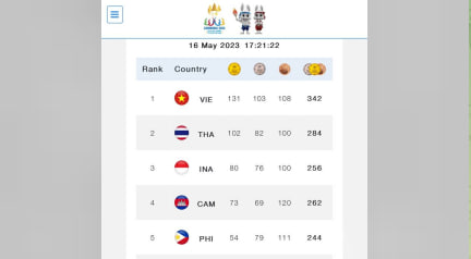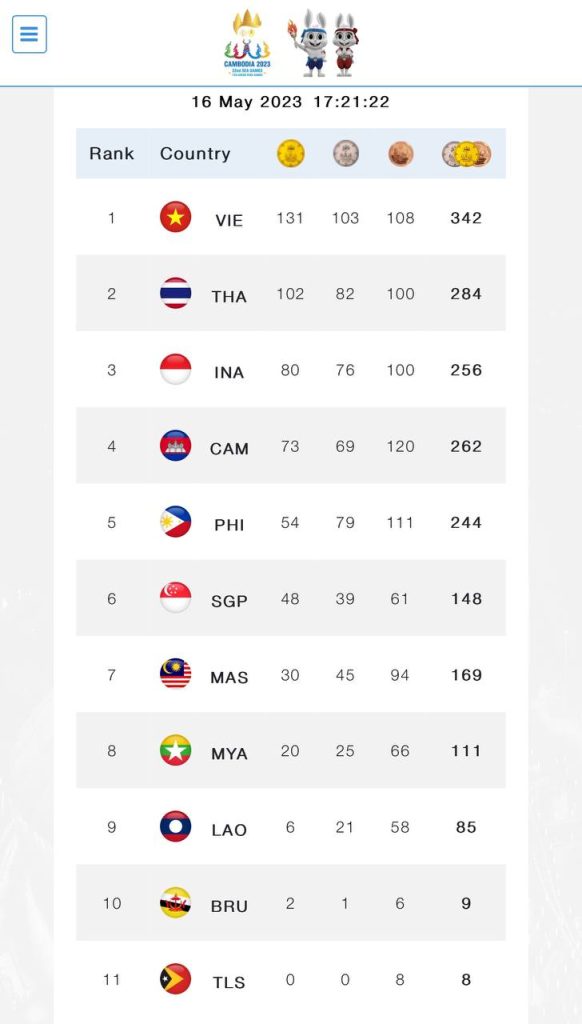 គិតត្រឹមម៉ោង៥៖២១នាទីល្ងាចនេះ កម្ពុជា ទទួលបានមេដាយសរុប ២៦២គ្រឿង ក្នុងនោះមាសចំនួន៧៣, ប្រាក់ចំនួន៦៩ និងសំរិទ្ធចំនួន១២០One-Minuteអត្ថបទដោយ៖AMS OneMinute #ams1minute AMS OneMinuteអត្ថបទមុនអត្ថបទបន្ទាប់