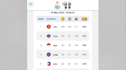 គិតត្រឹមម៉ោង៧៖០០នាទីយប់នេះ កម្ពុជា ទទួលបានមេដាយសរុប ២៧៣គ្រឿង ក្នុងនោះមាសចំនួន៧៦, ប្រាក់ចំនួន៧១ និងសំរិទ្ធចំនួន១២៦One-Minuteអត្ថបទដោយ៖AMS OneMinute #ams1minute AMS OneMinuteអត្ថបទមុនអត្ថបទបន្ទាប់