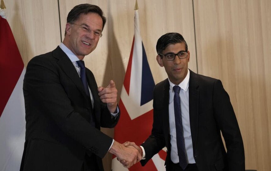 រ៉ៃក្យាវិក៖ នាយករដ្ឋមន្ត្រីអង់គ្លេស លោក រីស៊ី ស៊ូណាក់ និងនាយករដ្ឋមន្រ្តីហូឡង់ លោក ម៉ាក រូត បានជួបពិភាក្សាគ្នាក្រៅផ្លូវការ នៅមុនកិច្ចប្រជុំកំពូលក្រុមប្រឹក្សាអឺរ៉ុបនៅទីក្រុងរ៉ៃក្យាវិក ប្រទេសអ៊ីស្លង់។
