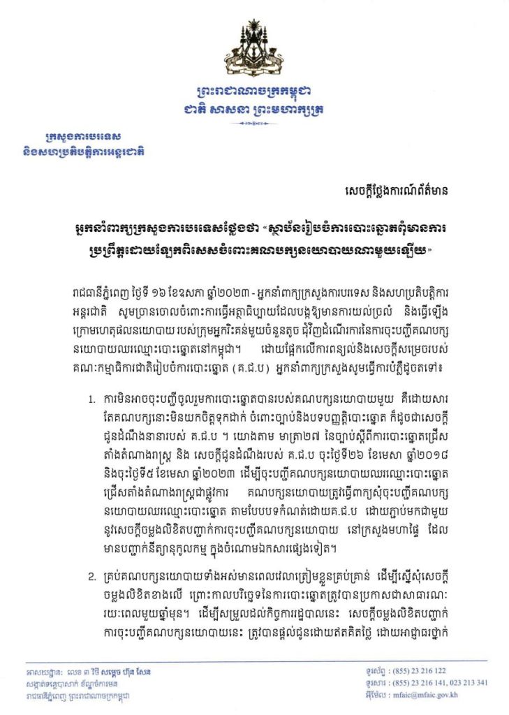 អ្នកនាំពាក្យក្រសួងការបរទេស៖ “ស្ថាប័នរៀបចំការបោះឆ្នោតពុំមានការប្រព្រឹត្តដោយឡែកពិសេសចំពោះគណបក្សនយោបាយណាមួយឡើយ”One-Minuteអត្ថបទដោយ៖AMS OneMinute #ams1minute AMS OneMinuteអត្ថបទមុនអត្ថបទបន្ទាប់