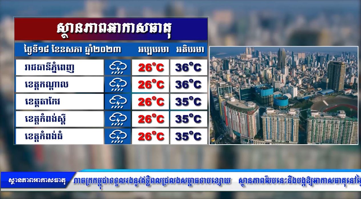 ព្យាករណ៍អាកាសធាតុ សម្រាប់ថ្ងៃទី១៨ ឧសភា ២០២៣
