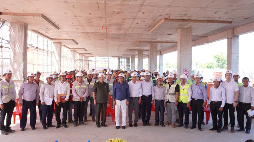 ភ្នំពេញ៖ ឯកឧត្តមបណ្ឌិត ថោង ខុន រដ្ឋមន្ត្រីក្រសួងទេសចរណ៍ អញ្ជើញត្រួតពិនិត្យការដ្ឋានសាងសង់ និងសួរសុខទុក្ខដល់បុគ្គលិក កម្មក-កម្មការីនីសំណង់អគារសាលាវិជ្ជាជីវៈទេសចរណ៍ ក្នុងទីតាំងរាជធានីភ្នំពេញប្រមាណ ១២០នាក់។