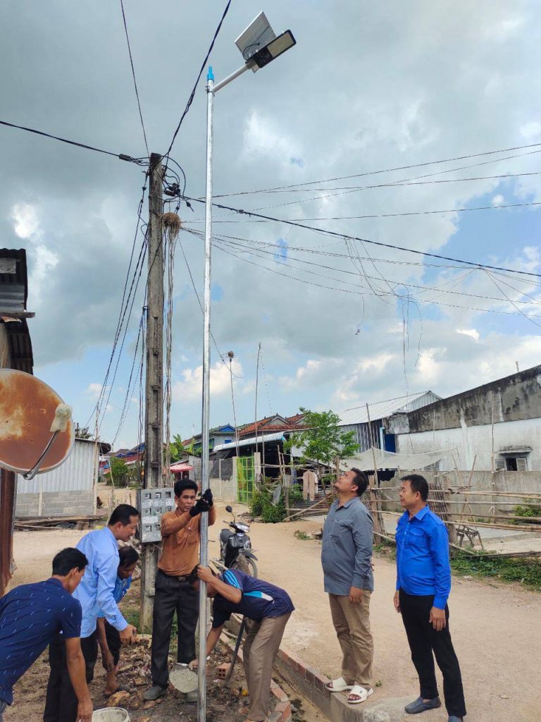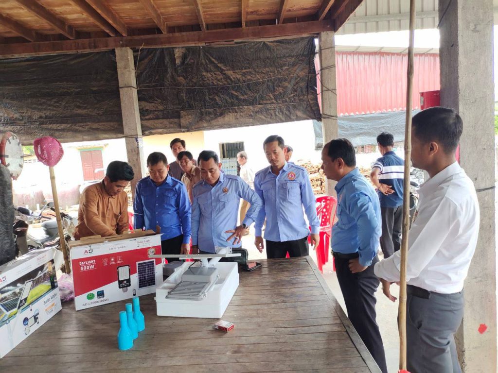 អំពូលសូឡា ជាច្រើនគ្រឿងត្រូវបានមន្រ្តីក្រុមការងារឃុំរមេញយកទៅដើម្បីបំពាក់តាមដងផ្លូវ ជូនប្រជាពលរដ្ឋក្នុងមូលដ្ឋានភូមិរមេញខាងត្បូង