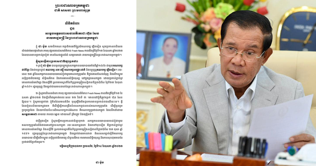 សម្តេចតេជោ ហ៊ុន សែន មិនទទួលយកការសុំទោសរបស់លោក ជា ប៉ូច និងឱ្យមេធាវីរបស់ត្រៀមរៀបចំដំណើរការតាមផ្លូវច្បាប់