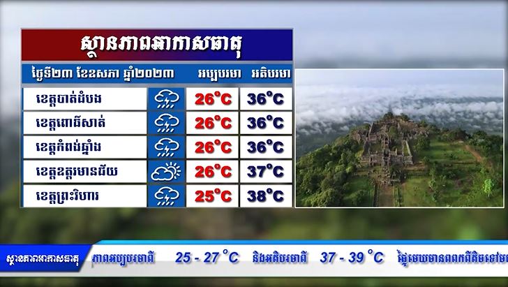 ព្យាករណ៍អាកាសធាតុ សម្រាប់ថ្ងៃទី២២ ឧសភា ២០២៣ (មានវីដេអូ)