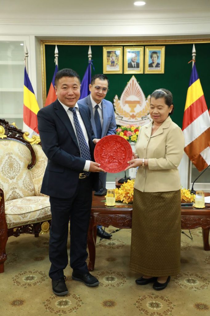 ភ្នំពេញ៖ សម្តេចកិត្តិសង្គហបណ្ឌិត ម៉ែន សំអន ឧបនាយករដ្ឋមន្ត្រី រដ្ឋមន្ត្រី ក្រសួងទំនាក់ទំនងជាមួយរដ្ឋសភា-ព្រឹទ្ធសភា និងអធិការកិច្ច បានអនុញ្ញាត ឱ្យ លោក កាវ ជាន (Mr. Gao Jian) ប្រធានក្រុមប្រឹក្សាភិបាល សមាគម កម្ពុជា ចិន ដើម្បីផ្លាស់ប្តូរការអប់រំ CCEEA ដឹកនាំគណ:ប្រតិភូចូលជួប សម្ដែងការគួរសម និងពិភាក្សាការងារ នៅទីស្តីការក្រសួង នាព្រឹកថ្ងៃចន្ទ ទី២២ ខែឧសភា ឆ្នាំ២០២៣ ។