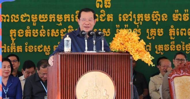 សម្ដេចតេជោ នាយករដ្ឋមន្ត្រី លើកឡើងបែបនេះក្នុងពិធីសំណេះសំណាលជាមួយបងប្អូនកម្មករ និយោជិត នៅក្នុងតំបន់ សេដ្ឋកិច្ចពិសេស រ៉ូយ៉ាល់ គ្រុប ភ្នំពេញ (ROYAL GROUP PIINOM PENH SEZ) សរុបចំនួន ១៩.០០០នាក់ មកពីរោងចក្រ ម៉ាវ៉ល ហ្គាមិន (Marvel Garment), Rongwing Garment និង រោងចក្រ DNQIAN TEXTILE CAMBODIA នាព្រឹកថ្ងៃទី២៦ ខែឧសភា ឆ្នាំ២០២៣ ៕ អត្ថបទ៖ វណ្ណលុក, រូបភាព៖ វ៉េង លីមហួត និង សួង ពិសិដ្ឋ