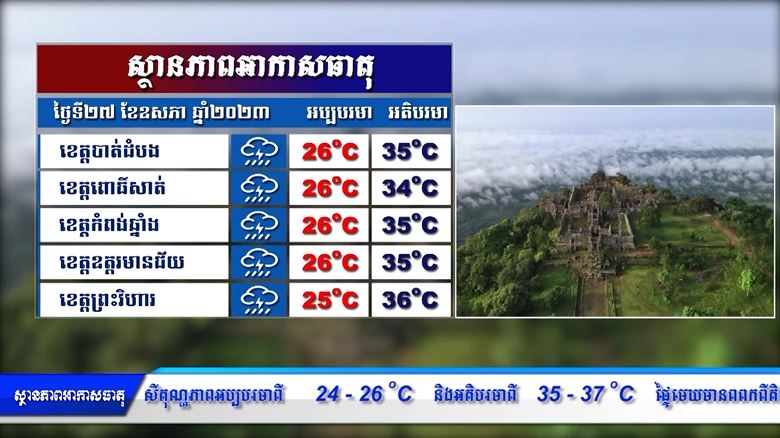 ព្យាករណ៍អាកាសធាតុ សម្រាប់ថ្ងៃទី២៧ ឧសភា ២០២៣ (មានវីដេអូ)