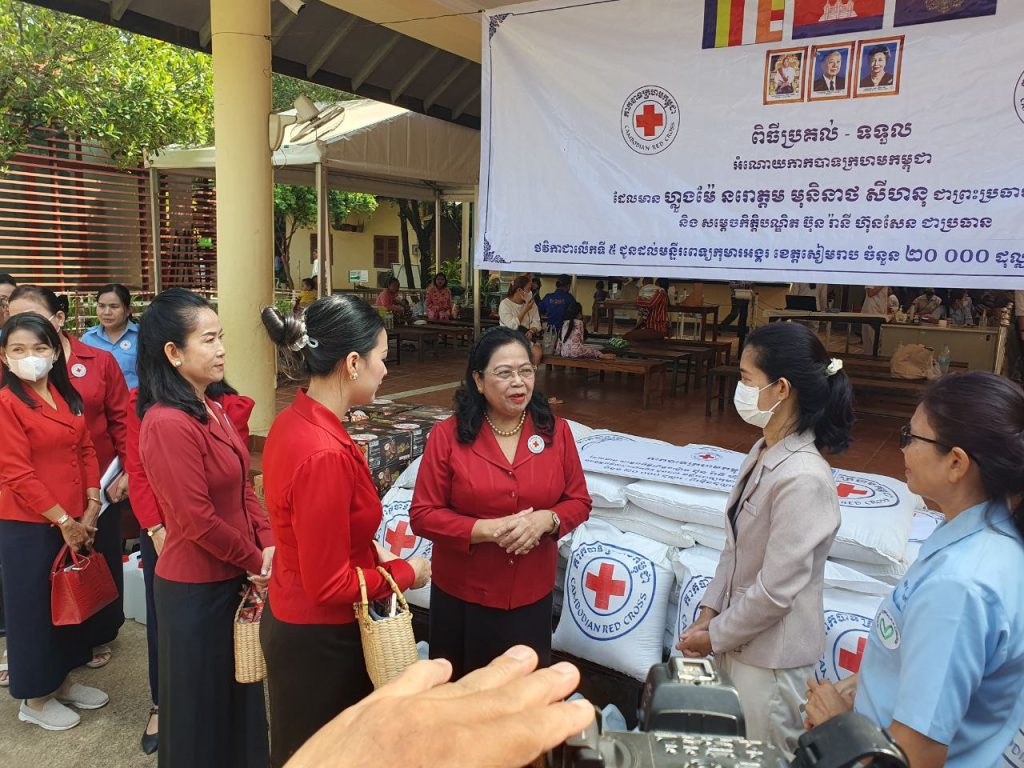 សៀមរាប៖ នាព្រឹកនៅថ្ងៃ ទី២៦ ខែឧសភា ឆ្នាំ២០២៣នេះ កាកបាទក្រហមកម្ពុជា ដែលមាន ហ្លួងម៉ែ នរោត្តម មុនីនាថ សីហនុ ជាព្រះប្រធានកិត្តិយស និងសម្តេចកិត្តិព្រឹទ្ធបណ្ឌិត ប៊ុន រ៉ានី ហ៊ុនសែន ជាប្រធាន បានឧបត្ថម្ភជាលើកទី៥ នូវថវិកាចំនួន ២០,០០០ដុល្លារ (ពីរម៉ឺនដុល្លារអាម៉េរិក) រួមជាមួយគ្រឿងឧបភោគបរិភោគ និងសម្ភារប្រើប្រាស់មួយចំនួនទៀត ដល់មន្ទីរពេទ្យកុមារអង្គរ ខេត្តសៀមរាប ក្នុងឱកាសដែល មន្ទីរពេទ្យនេះ ប្រារព្ធកម្មវិធីបុណ្យផ្កាប្រាក់មហាសាមគ្គីឆ្នាំទី១០ ដើម្បីរកមូលនិធិសម្រាប់ចូលរួមចំណែកក្នុងការព្យាបាល និងថែទាំសុខភាព កុមារ-ទារក ប្រមាណ ៤០០-៤៥០នាក់ ក្នុងមួយថ្ងៃដោយឥតគិតថ្លៃ។