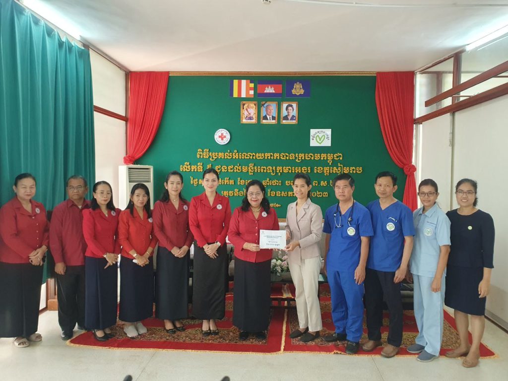កាកបាទក្រហមកម្ពុជា ឧបត្ថម្ភថវិកា រួមជាមួយគ្រឿងឧបភោគបរិភោគ និងសម្ភារៈប្រើប្រាស់ ដល់មន្ទីរពេទ្យកុមារអង្គរ