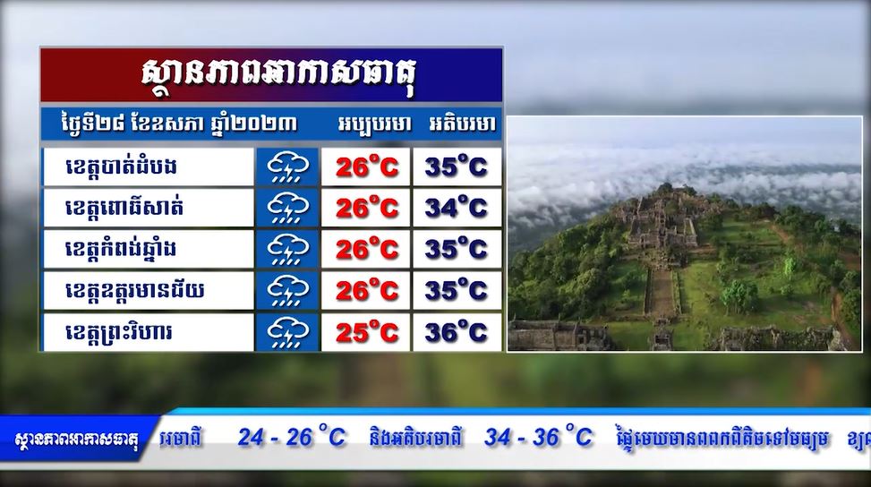 ព្យាករណ៍អាកាសធាតុ សម្រាប់ថ្ងៃទី២៨ ឧសភា ២០២៣ (មានវីដេអូ)