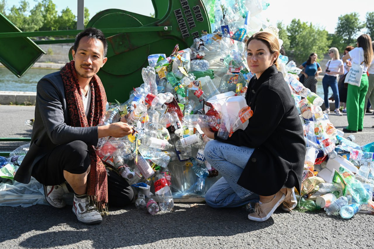ប៉ារីស៖ ក្រុមការងារនៃអង្គការការពារបរិស្ថាន Greenpeace បានបង្ហាញស្នាដៃសិល្បៈដ៏អស្ចារ្យមួយនៅទីក្រុងប៉ារីស នៅថ្ងៃសៅរ៍នេះ ក្នុងទម្រង់ជាម៉ាស៊ីនក្រឡុកដបនៅពីមុខធុងប្រេង ស្របពេលមានកិច្ចពិភាក្សាស្តីពីការលុបបំបាត់កាកសំណល់ប្លាស្ទិក។