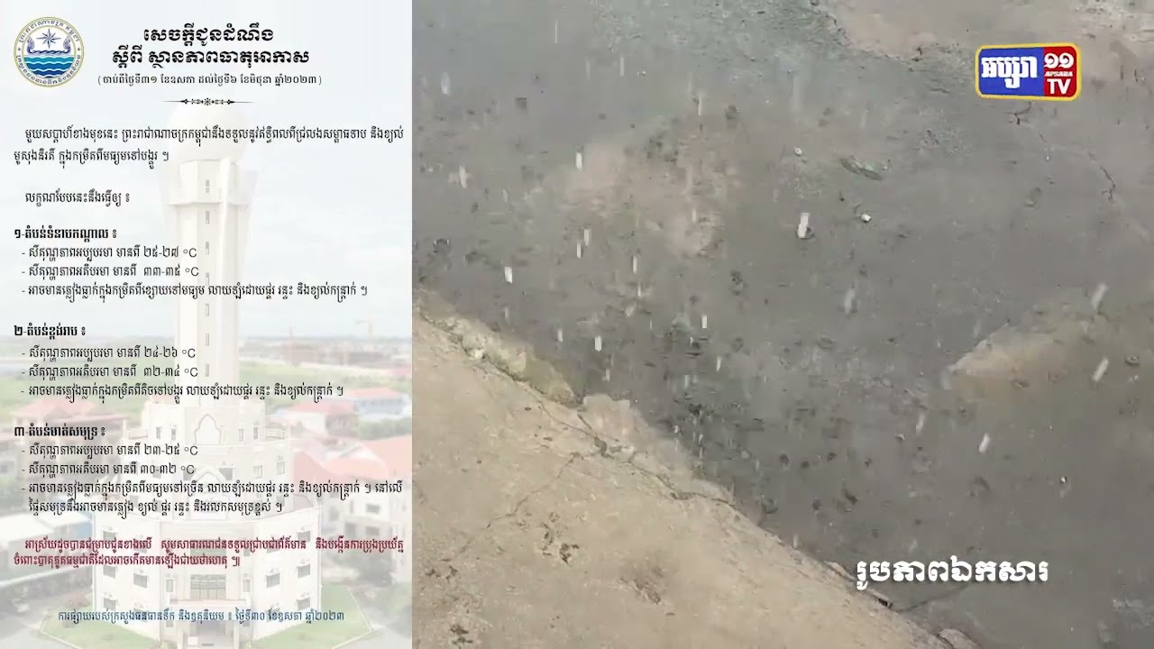 ភ្លៀងបន្តធ្លាក់ក្នុងមួយសប្តាហ៍ទៅមុខ (Video Inside)