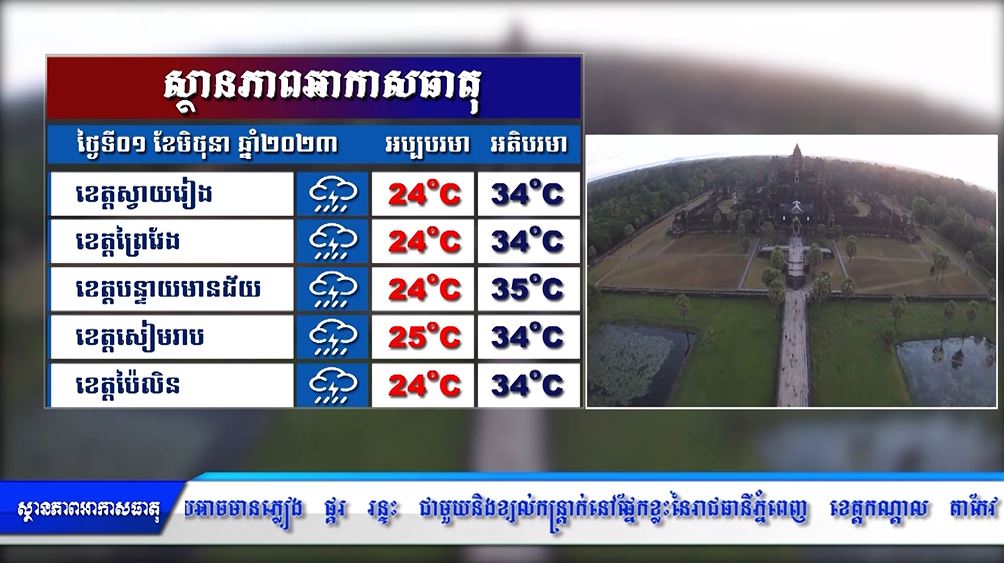 ព្យាករណ៍អាកាសធាតុ សម្រាប់ថ្ងៃទី០១ មិថុនា ២០២៣ (មានវីដេអូ)