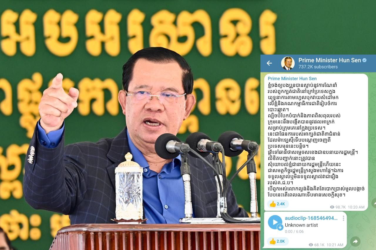ភ្នំពេញ៖ តាមបណ្ដាញសង្គមតេលេក្រាមនៅព្រឹកថ្ងៃទី៣១ ខែឧសភា ឆ្នាំ២០២៣ សម្តេចតេជោ ហ៊ុន សែន នាយករដ្ឋមន្ត្រី កម្ពុជា បានទម្លាយសារសំឡេងមួយ របស់ «ឆាំ ឆានី» សកម្មជនរបស់ក្រុមប្រឆាំងជ្រុលនិយមក្រៅប្រទេស ដែលណែនាំឱ្យ ធ្វើសកម្មភាពញុះញង់អុជអាលបំបែកបំបាក់ផ្ទៃក្នុងថ្នាក់ដឹកនាំបក្សប្រជាជនកម្ពុជា និងបំផ្លាញដំណើរការបោះឆ្នោតនៅកម្ពុជា។