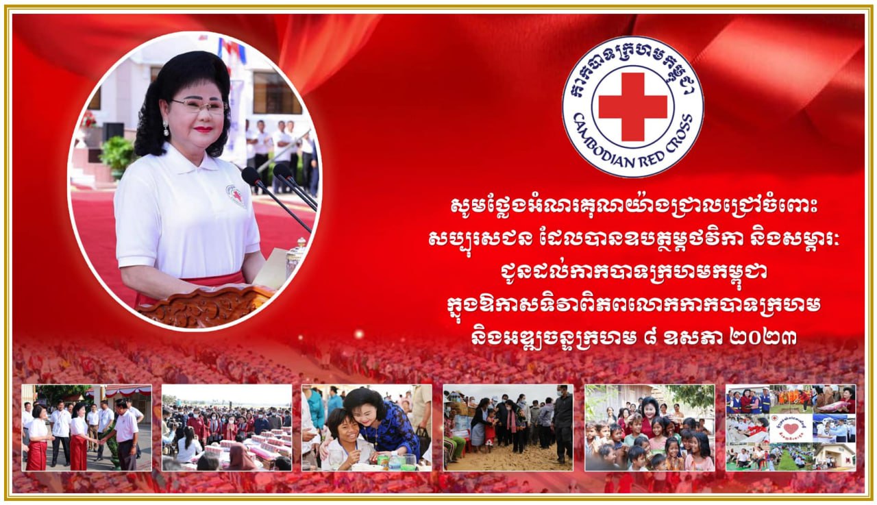 សម្ដេចកិត្តិព្រឹទ្ធបណ្ឌិតបានលើកឡើងថា ៖ «ក្នុងនាមខ្ញុំផ្ទាល់ សូមក្រាបបង្គំថ្វាយអំណរ ព្រះរាជគុណយ៉ាងជ្រាលជ្រៅបំផុត ចំពោះព្រះករុណា ព្រះបាទសម្តេចព្រះបរមនាថ នរោត្តម សីហមុនី និងសម្តេចព្រះមហាក្សត្រី ព្រះវររាជមាតាជាតិខ្មែរ រួមនឹងសប្បុរសជនគ្រប់មជ្ឈដ្ឋាន ដែលបានឧបត្ថម្ភថវិកា និងសម្ភារៈដល់កាកបាទក្រហមកម្ពុជា ក្នុងឱកាសខួបលើកទី១៦០ ទិវាពិភពលោកកាកបាទក្រហម និងអឌ្ឍចន្ទក្រហម ៨ ឧសភា ២០២៣»។