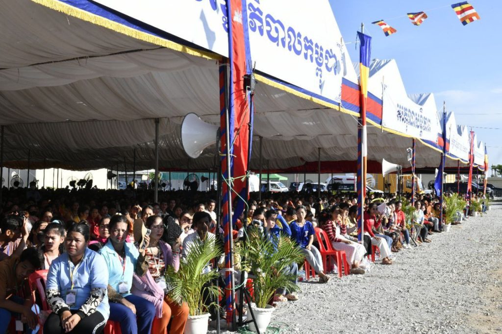 កណ្ដាល៖ ថ្លែងនៅក្នុងពិធីជួបជាមួយនឹងកម្មករជាង ១ម៉ឺន៧ពាន់នាក់ នៅសួនឧស្សាហកម្មខេមតុន (CAMTON INDUSTRIAL PARK) ក្នុងស្រុកពញាឮ ខេត្តកណ្ដាល នៅព្រឹកថ្ងៃទី០៣ ខែមិថុនា ឆ្នាំ២០២៣ សម្តេចតេជោ ហ៊ុន សែន នាយករដ្ឋមន្ត្រីកម្ពុជា បានអំពាវនាវឲ្យថៅកែរោងចក្រ និងកម្មករ កម្មការិនី ធ្វើការរួមគ្នាបំពេញឲ្យគ្នាទៅវិញទៅមក បង្កើតទៅជាកន្លែងសុខសាន្តមួយ។ សម្ដេចថា ប្រសិនបើគ្មានរោងចក្រ គ្មានក្រុមហ៊ុន សហគ្រាសទេ ច្បាស់ណាស់ពេលនេះម៉ោងនេះយើងជាកសិករ។