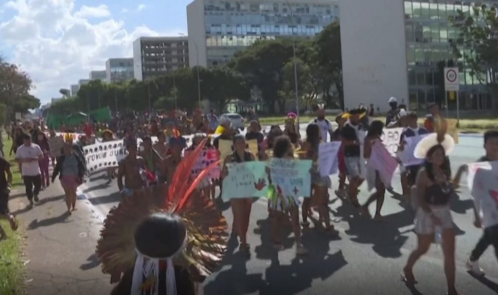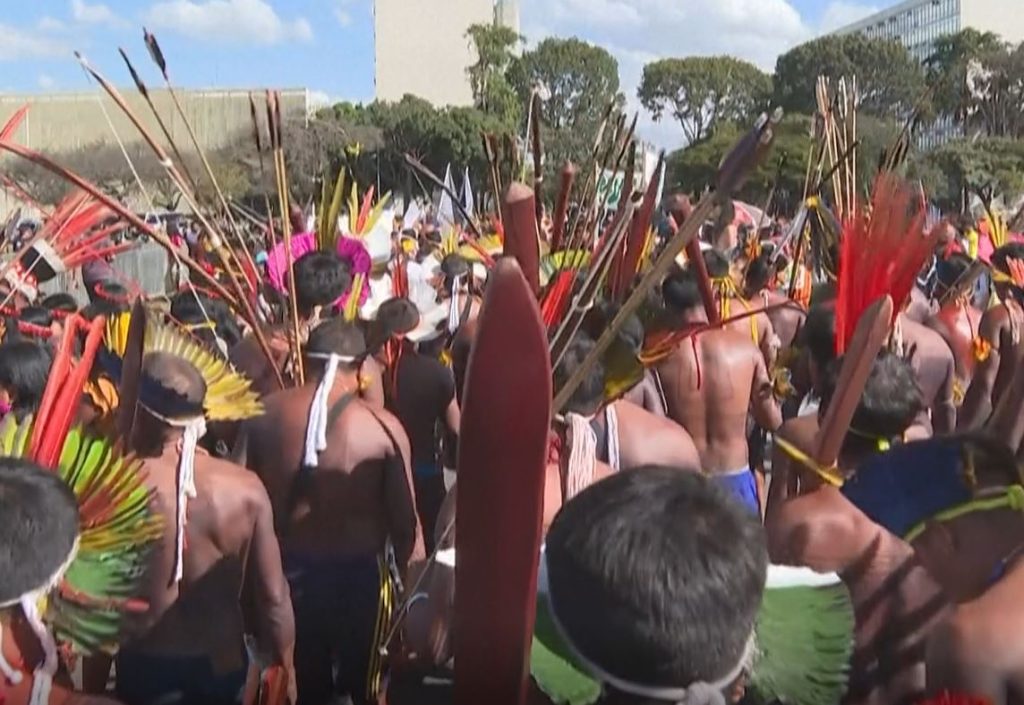 ប្រេស៊ីលីយ៉ា៖ ក្រុមជនជាតិដើមភាគតិចក្នុងប្រទេសប្រេស៊ីលធ្វើបាតុកម្មតវ៉ាទាមទារសិទ្ធិដីធ្លី។ ក្រុមជនជាតិដើមភាគតិចនៅប្រទេសប្រេស៊ីលបានធ្វើសកម្មភាពតវ៉ា នៅរដ្ឋធានី ប្រេស៊ីលីយ៉ា មុនពេលការកាត់ក្តីដ៏សំខាន់មួយ។