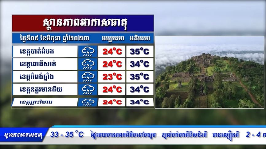 ព្យាករណ៍អាកាសធាតុ សម្រាប់ថ្ងៃទី០៩ មិថុនា ២០២៣ (មានវីដេអូ)