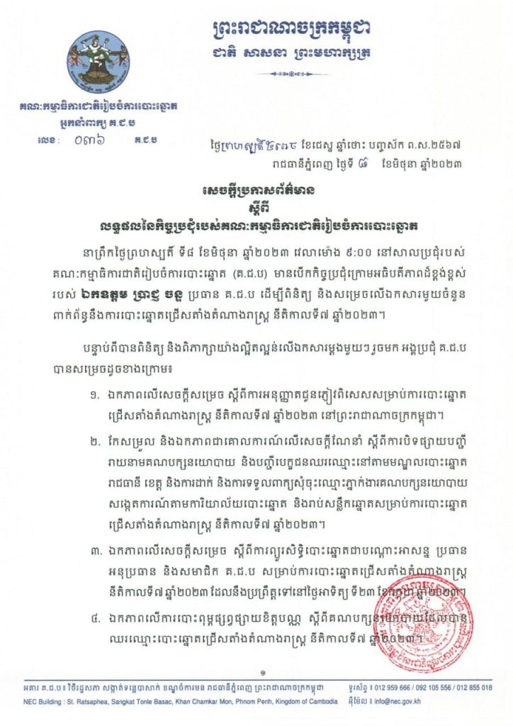 សេចក្តីប្រកាសព័ត៌មានរបស់អ្នកនាំពាក្យ គ.ជ.ប ស្តីពីលទ្ធផលនៃកិច្ចប្រជុំរបស់គណៈកម្មាធិការជាតិរៀបចំការបោះឆ្នោត នាព្រឹកថ្ងៃទី៨ មិថុនា ២០២៣One-Minuteបោះឆ្នោតសកល ២០២៣អត្ថបទដោយ៖AMS OneMinute #ams1minute #khelection2023 #បោះឆ្នោត២០២៣ AMS OneMinuteអត្ថបទមុនអត្ថបទបន្ទាប់