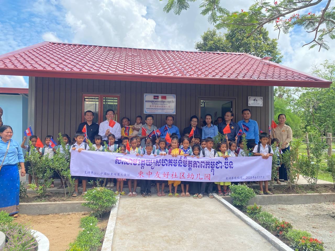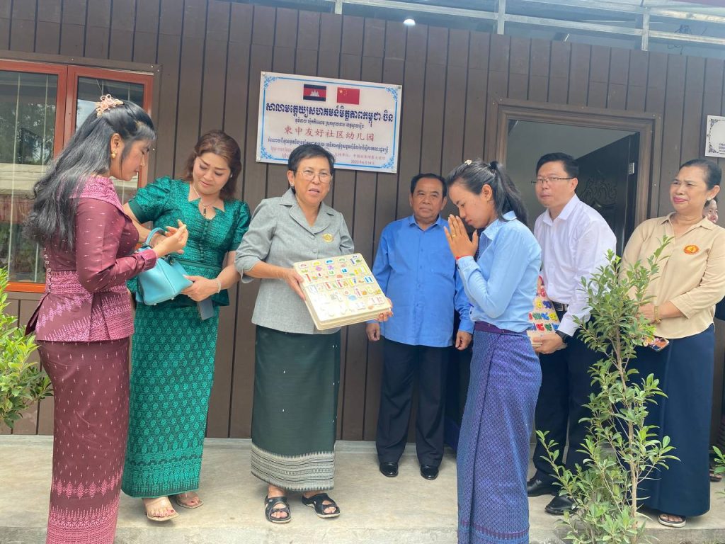 ស្វាយរៀង៖ សាលាមត្តេយ្យសហគមន៍មិត្តភាពកម្ពុជា-ចិន ត្រូវបានដាក់ឱ្យដំណើរការ និងប្រគល់ជូនភូមិវាយ ឃុំគគីរសោម ស្រុកស្វាយទាប ខេត្តស្វាយរៀង កាលពីព្រឹកថ្ងៃទី១៧ ខែមិថុនា ឆ្នាំ២០២៣ លោកជំទាវបណ្ឌិតសភាចារ្យ ភឿង សកុណា រដ្ឋមន្ត្រីក្រសួងវប្បធម៌ និងវិចិត្រសិល្បៈ ។