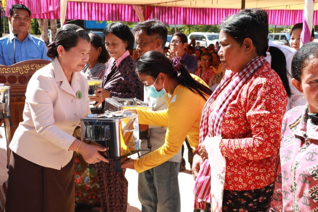 សម្តេចកិត្តិសង្គហបណ្ឌិត បន្តថា កាលពីថ្ងៃទី ២៥ ខែកក្កដា ឆ្នាំ២០២២ សមាគមនារីកម្ពុជាដើម្បីសន្តិភាព និងអភិវឌ្ឍន៍ បានចុះកិច្ចសហប្រតិបត្តិការ ជាមួយសហព័ន្ធនារី វៀតណាម និងក្រុមហ៊ុន អ៊ីនត្រាកូ ដើម្បីអនុវត្តគម្រោង ការចែកចាយដោយឥតគិតថ្លៃ នូវចង្ក្រានសន្សំសំចៃថាមពលចំនួន ៣០ម៉ឺនគ្រឿង និងធុងចម្រោះទឹកស្អាតចំនួន ១០ម៉ឺនគ្រឿង ដែលមានតម្លៃសរុបចំនួនជាង ១លានដុល្លា ដល់គ្រួសារស្ត្រីក្រីក្រ និងគ្រួសារជួបការលំបាកដែលប្រើប្រាស់ចង្ក្រានដុតអូសឈើបែបបុរាណ និងគ្រួសារដែលមិនមានទឹកស្អាតសម្រាប់ប្រើប្រាស់ ដោយឲ្យឥតគិតថ្លៃនៅខេត្តចំនួន ០៨គឺ មានខេត្តកែប, ខេត្តកំពត, ខេត្តកំពង់ស្ពឺ, ខេត្តព្រៃវែង, ខេត្តកំពង់ធំ, ខេត្តកំពង់ចាម ខេត្តត្បូងឃ្មុំ ។