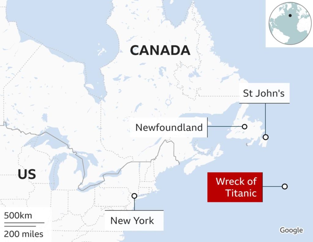 នាវាមុជទឹក Titan របស់ក្រុមហ៊ុន OceanGate បានចេញដំណើរថ្ងៃទី១៦ មិថុនា ២០២៣ ពីតំបន់ St. John’s, Newfoundland ប្រទេសកាណាដា ទៅទស្សនាខ្មោចកប៉ាល់ Titanic ដែលលិចក្នុងជម្រៅទឹក ៣ ៨០០ម៉ែត្រក្នុងមហាសមុទ្រអាត្លង់ទិកកាលពីឆ្នាំ១៩១២ – Reuters