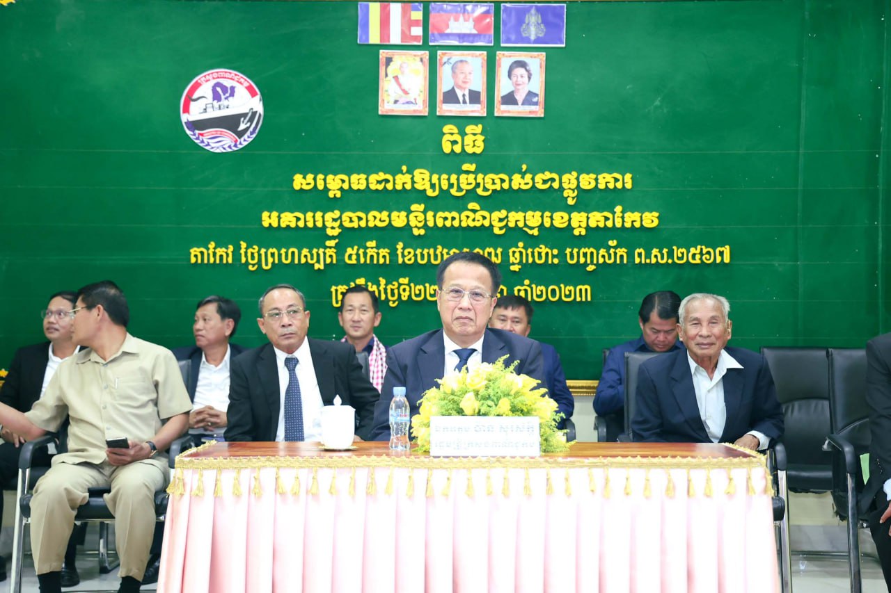 ខេតតាកែវ៖ ក្នុងពិធីសម្ពោធដាក់ឱ្យប្រើប្រាស់ជាផ្លូវការ អគាររដ្ឋបាលមន្ទីរពាណិជ្ជកម្ម ខេត្តតាកែវ ស្ថិតក្នុងភូមិប្រហ៊ូត សង្កាត់រកាក្រៅ ក្រុងដូនកែវ កាលពីថ្ងៃទី២២ ខែមិថុនា ឆ្នាំ២០២៣ ឯកឧត្តម ប៉ាន សូរស័ក្តិ រដ្ឋមន្ត្រីក្រសួងពាណិជ្ជកម្ម លើកឡើងថា បើទោះបីជាពិភពលោកកំពុងជួបប្រឈមនូវវិបត្តិធំៗជាសកល ក៏ដោយ ក៏ កម្ពុជានៅតែរក្សាបាននូវលំនឹងសេដ្ឋកិច្ច ពាណិជ្ជកម្ម នយោបាយ ការប្រយុទ្ធឈ្នះជំងឺកូវីដ-១៩ ព្រមទាំងទំហំពាណិជ្ជកម្ម មានសន្ទុះកើនទ្បើងគួរកត់សម្គាល់។