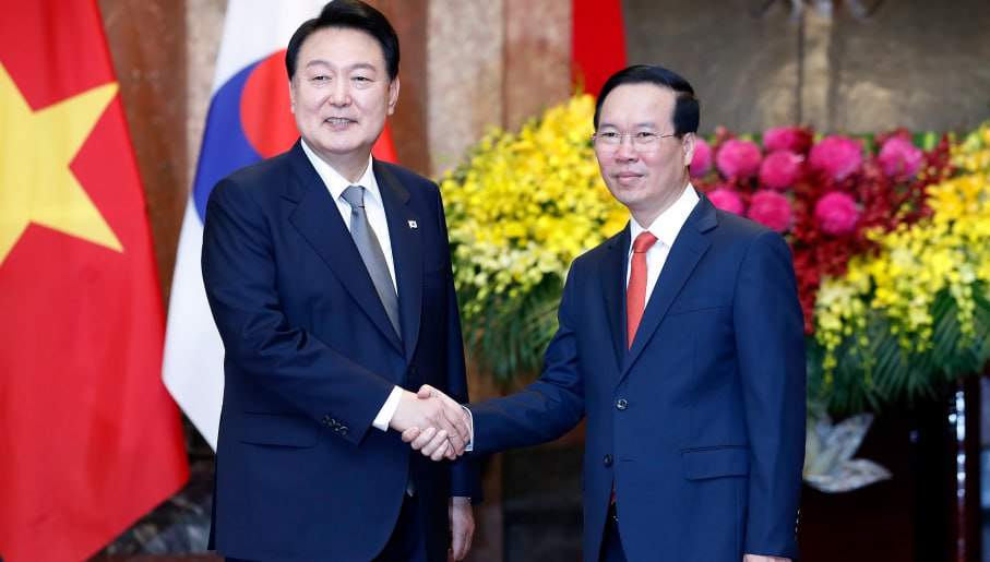 នៅក្នុងដំណើរទស្សនកិច្ចលើកដំបូងមកកាន់ប្រទេសវៀតណាម ក្នុងនាមជាប្រធានាធិបតីកូរ៉េខាងត្បូង លោក យ៉ូន សុកយ៉ុល បានទទួលស្គាល់ពីបញ្ហាសេដ្ឋកិច្ច ប៉ុន្តែបានរំលឹកឡើងវិញនូវតួនាទីសំខាន់របស់វៀតណាមសម្រាប់យុទ្ធសាស្ត្រជំរុញកំណើនសេដ្ឋកិច្ចរបស់ទីក្រុងសេអ៊ូល។ លោក យ៉ូន បានចុះហត្ថលេខាលើកិច្ចព្រមព្រៀងចំនួន ១៧ ជាមួយប្រធានាធិបតីវៀតណាម លោក វ៉ូ វ៉ាន់ធឿង លើបញ្ហាមួយចំនួន ចាប់ពីធនធានរ៉ែសំខាន់ៗរហូតដល់ពលករវៀតណាមនៅកូរ៉េខាងត្បូង ហើយបាននិយាយថា ទីក្រុងសេអ៊ូលនឹងបង្កើនកិច្ចសហប្រតិបត្តិការជាមួយទីក្រុងហាណូយ ប្រឆាំងនឹងការគំរាមកំហែងនុយក្លេអ៊ែររបស់កូរ៉េខាងជើង។