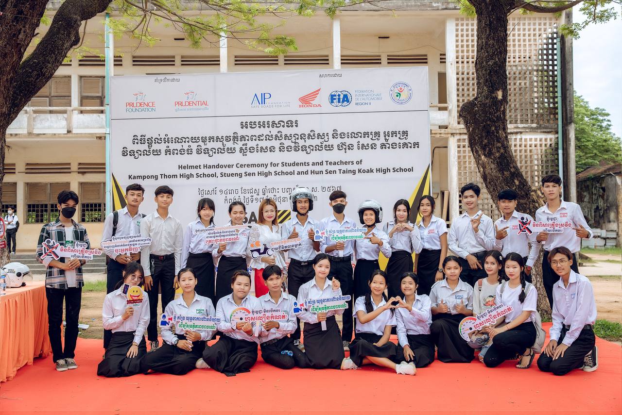 កំពង់ធំ៖ ជាផ្នែកមួយនៃកម្មវិធី “វិធានការសុវត្ថិភាពចរាចរណ៍” ដែលបច្ចុប្បន្នបាននិងកំពុងអនុវត្តនៅប្រទេសកម្ពុជាក្រោមការជួយឧបត្ថម្ភគាំទ្រពីក្រុមហ៊ុន Prudential Cambodia និងមូលនិធិ Prudence អង្គការមូលនិធីបង្ការរបួសអាស៊ីបានប្រារព្ធពិធីផ្តល់អំណោយមួកសុវត្ថិភាពក្នុងខេត្តកំពង់ធំនៅក្នុងខែមិថុនា ឆ្នាំ២០២៣ នៅតាមសាលារៀនចំនួនបីដើម្បីការពារអាយុជីវិតរបស់សិស្សានុសិស្សកម្ពុជា និងបង្កលក្ខណៈងាយស្រួលដល់ការទទួលបានការសិក្សាអប់រំ។ សាលារៀនចំនួនបីដែលបានជ្រើសរើសសម្រាប់កម្មវិធីនាឆ្នាំនេះ រួមមានវិទ្យាល័យកំពង់ធំ វិទ្យាល័យ ហ៊ុន សែន តាំងគោក និងវិទ្យាល័យស្ទឹងសែន។ សិស្សានុសិស្សប្រមាណ ៩០០នាក់ និងលោកគ្រូ-អ្នកគ្រូប្រមាណ ១៥០នាក់បានចូលរួមក្នុងពិធីខាងលើ។
