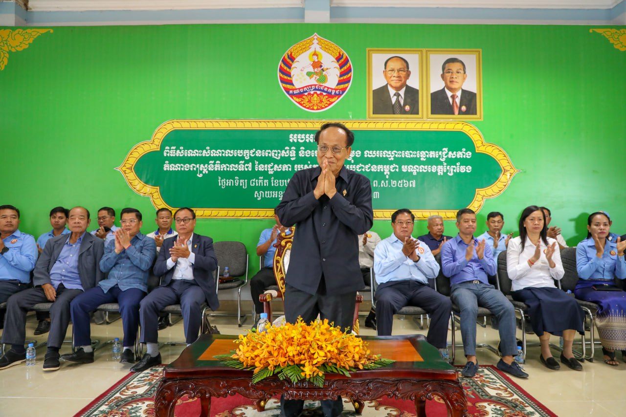 ព្រៃវែង ៖ នៅព្រឹកថ្ងៃទី២៥ ខែមិថុនា ឆ្នាំ២០២៣ នៅមន្ទីរគណបក្សប្រជាជនកម្ពជាស្រុកស្វាយឣន្ទរឯកឧត្តម មុំម ស៊ីបុន សមាជិកគណ:កម្មការទី១ នៃរដ្ឋសភា និងជាតំណាងរាស្រ្តមណ្ឌលខេត្តព្រៃវែង តំណាង ឯកឧត្តមកិត្តិសេដ្ឋាបណ្ឌិត ជាម យៀប សមាជិកគណៈអចិន្ត្រៃយ៍នៃគណៈកម្មាធិការកណ្តាលគណបក្សប្រជាជនកម្ពុជា និងជាអនុប្រធានក្រុមការងារចុះមូលដ្ឋានខេត្តព្រៃវែង បានអញ្ជើញដឹកនាំបេក្ខជនពេញសិទ្ធ និងបម្រុងឈរឈ្មោះបោះឆ្នោតជ្រើសតាំងតំណាងរាស្រ្តនីតិកាលទី៧ នៃរដ្ឋសភា ជួបសំណេះសំណាលជាមួយសមាជិក សមាជិកាគណបក្សប្រជាជនកម្ពុជា ស្រុកស្វាយឣន្ទរចំនួនជាង ៣០០នាក់ ។