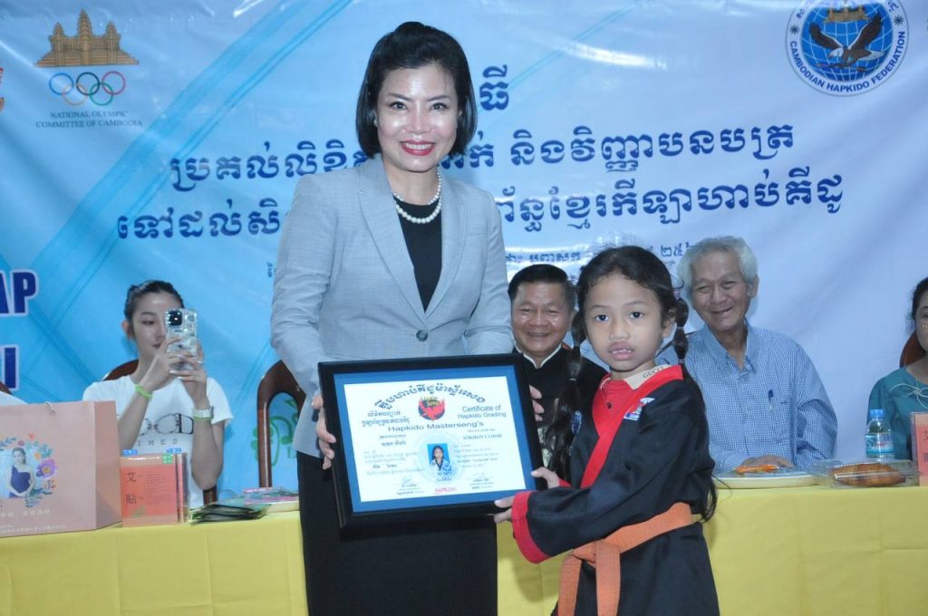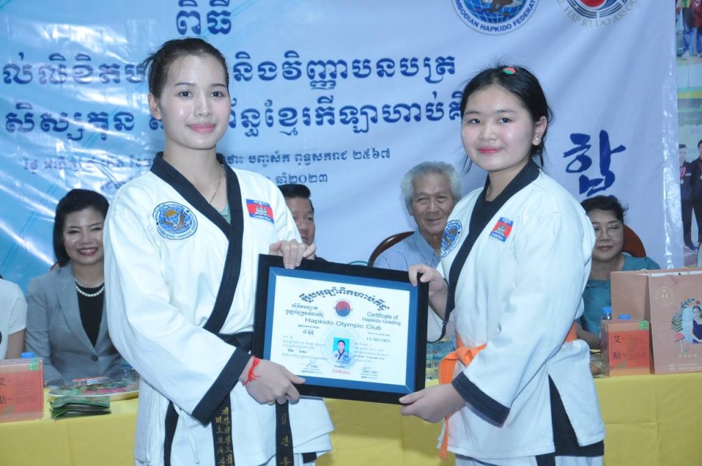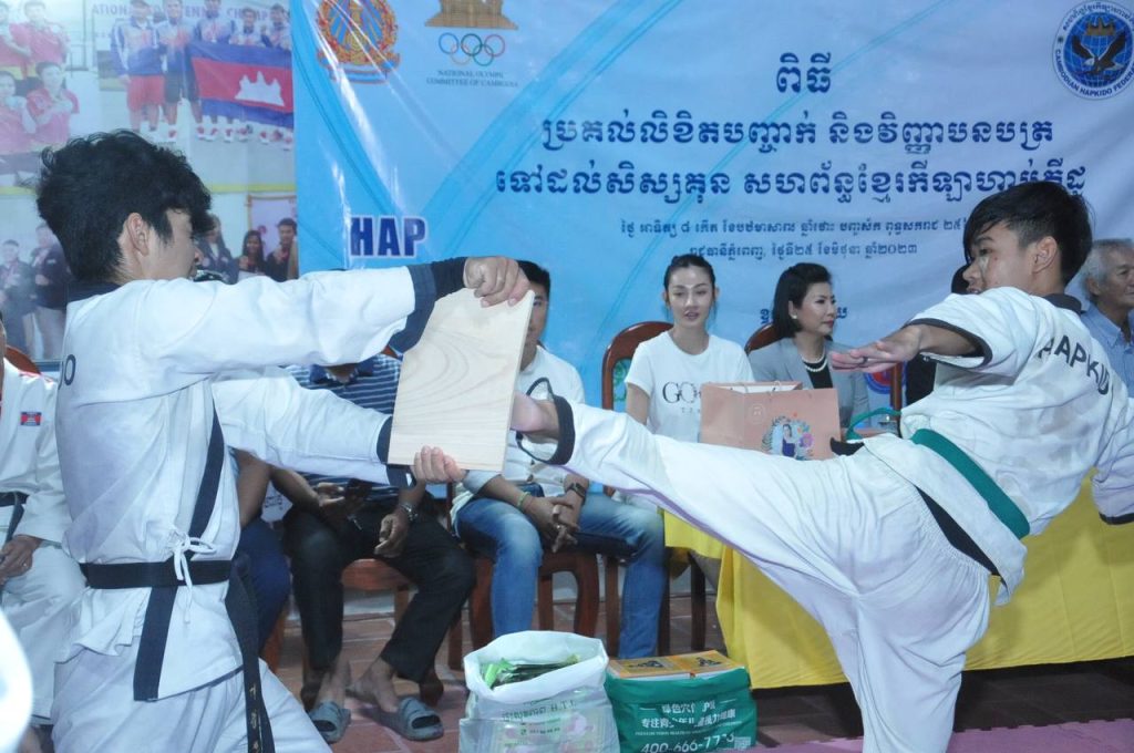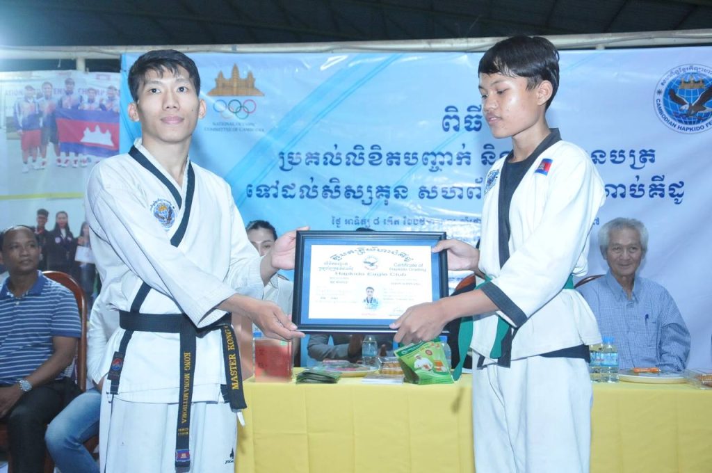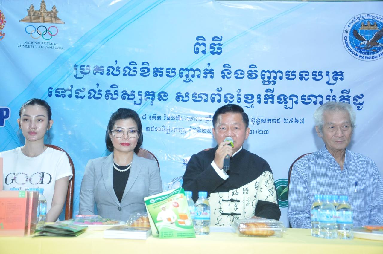 ភ្នំពេញ ៖ សហព័ន្ធខ្មែរកីឡាហាប់គីដូ នាល្ងាចថ្ងៃទី២៥ ខែ មិថុនា ឆ្នាំ ឆ្នាំ២០២៣ បានផ្តល់ ជូននូវវិញ្ញាបនត្រ និងលិខិតបញ្ជាក់ដល់សិស្សគុនដែលបញ្ចប់ការហ្វឹកហាត់រយៈពេល ៦ខែ និងរយៈពេល១ឆ្នាំ ។