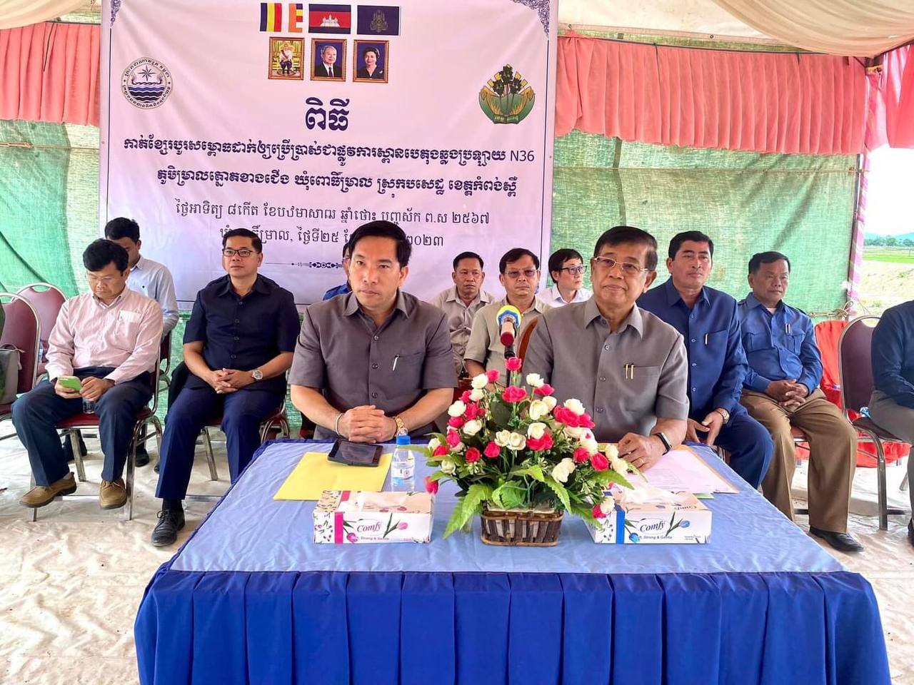 (កំពង់ស្ពឺ)៖ឯកឧត្តមទេសរដ្ឋមន្ត្រី អៀង មូលី ប្រធានអាជ្ញាធរជាតិប្រយុទ្ធនឹងជំងឺអេដស៍ និងជាប្រធានក្រុមការងាររាជរដ្ឋាភិបាលចុះមូលដ្ឋានស្រុកបសេដ្ឋ ខេត្តកំពង់ស្ពឺ បានអញ្ជើញចូលរួមម្ភោធដាក់ឱ្យប្រើប្រាស់ជាផ្លូវការស្ពានបេតុងឆ្លងប្រឡាយ N36 នៅភូមិម្រាលត្នោតខាងជើង ឃុំពោធិម្រាល ស្រុកបសេដ្ឋ ខេត្តកំពង់ស្ពឺ នៅថ្ងៃទី២៦ ខែមិថុនា ឆ្នាំ២០២៣នេះ។