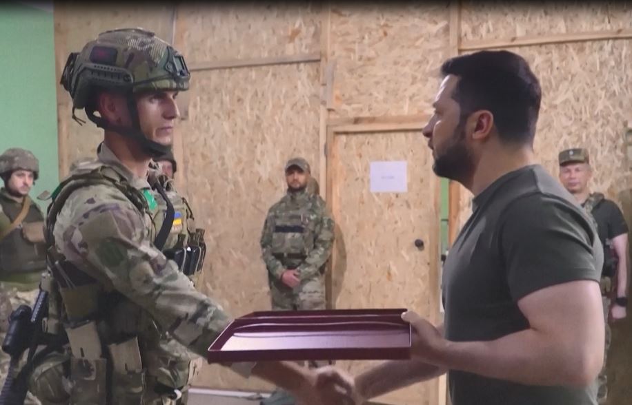 គៀវ៖ លោក Zelensky ទស្សនាតំបន់ Donetsk ជួរមុខរបស់អ៊ុយក្រែន ប្រគល់រង្វាន់ដល់ទាហាន។