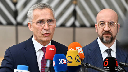 ថ្លែងទៅកាន់អ្នកសារព័ត៌មានមុនកិច្ចប្រជុំក្រុមប្រឹក្សាអឺរ៉ុបនៅទីក្រុងព្រុចសែល ប្រទេសប៊ែលហ្សិក លោក Stoltenberg ត្រូវបានសួរថា តើអ៊ុយក្រែនអាចសង្ឃឹមថា នឹងទទួលបានការធានាសន្តិសុខពី NATO និង EU មុនពេលចូលរួមជាមួយប្លុកទាំងពីរដែរឬទេ។