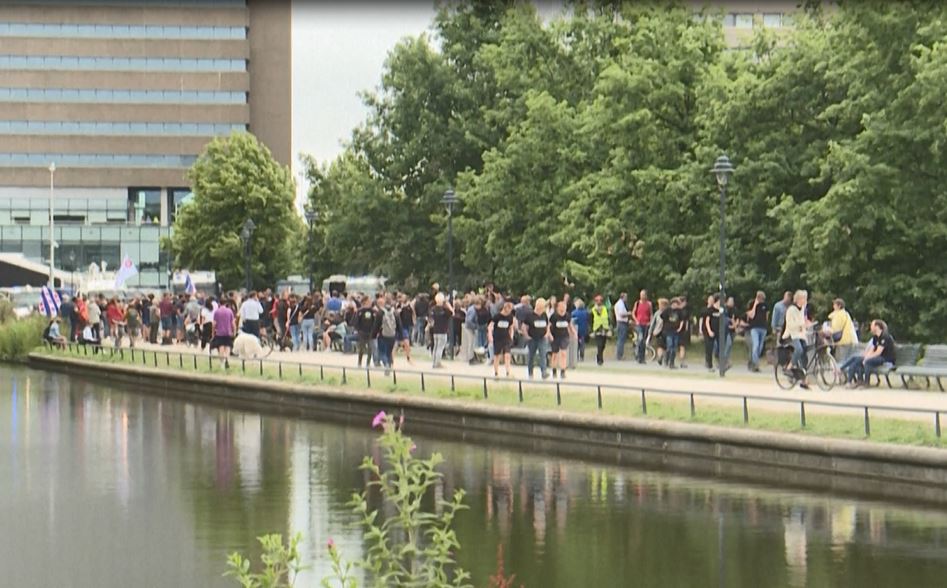 អាំស្ទែរដាំ៖ ប៉ូលិសហូឡង់ធ្វើការបិទផ្លូវប្រឆាំងនឹងកសិករ ដែលតវ៉ានិងអ្នកគាំទ្ររបស់ពួកគេ នៅជិតអគារសភា ជាលក្ខណៈបណ្តោះអាសន្ន ក្នុងទីក្រុងឡាអេ។