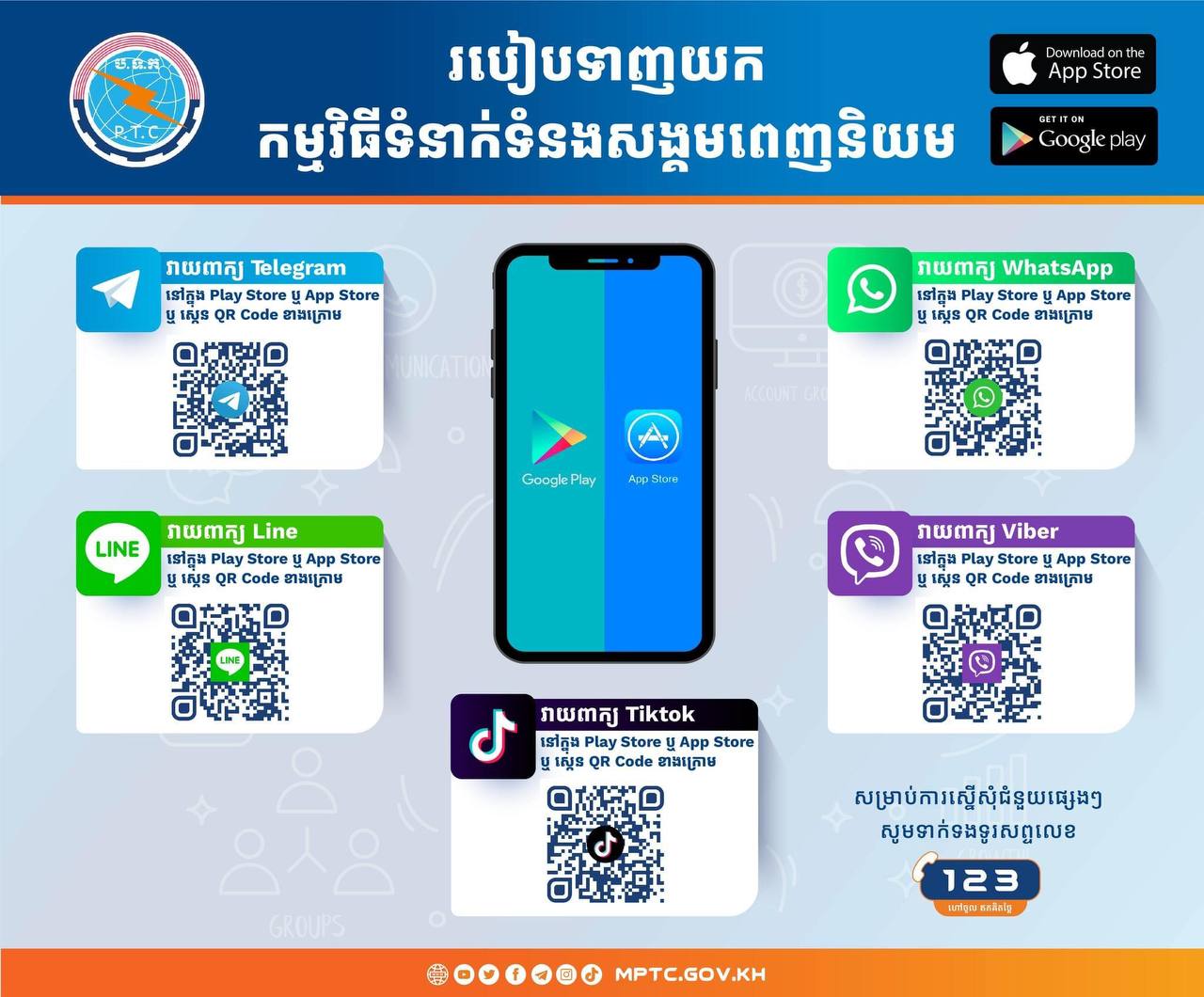 ក្រសួងប្រៃសណីយ៍ ប្រាប់ពីរបៀបទាញយកកម្មវិធីទំនាក់ទំនងសង្គមដែលពេញនិយម មកប្រើប្រាស់ដោយឥតគិតថ្លៃ