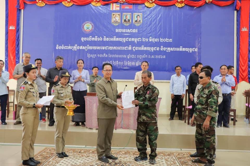 (ខេត្តត្បូងឃ្មុំ)៖ ឯកឧត្តម អ៊ាង សុផល្លែត សមាជិកគណៈកម្មាធិការកណ្តាលគណបក្សប្រជាជនកម្ពុជា និង ជាប្រធានក្រុមការងារគណបក្សចុះមូលដ្ឋានស្រុកអូររាំងឪ ខេត្តត្បូងឃ្មុំ បានថ្លែងបញ្ជាក់ ក្នុងឱកាស ជួបសំណេះ សំណាល និងបំពាក់មេដាយជូន អតីតយុទ្ធជន ចំនួនជាង ២០០នាក់ នៅទូទាំងស្រុកអូររាំងឪ ខេត្តត្បូងឃ្មុំ នៅថ្ងៃសុក្រ ទី ៣០ ខែមិថុនា ឆ្នាំ២០២៣ ដោយមានការចូលរួមពី ឯកឧត្តម ឡាំ ឆន សមាជិកគណៈកម្មាធិការកណ្តាលគណបក្សប្រជាជនកម្ពុជា និងជាអនុប្រធានក្រុមការងារគណបក្សចុះមូលដ្ឋានស្រុក លោកជំទាវ សាន្ត អារុណ សមាជិកគណៈកម្មាធិការកណ្តាលគណបក្សប្រជាជនកម្ពុជា និងជាអនុប្រធានក្រុមការងារគណបក្សចុះមូលដ្ឋានស្រុក ឯកឧត្តម លោកជំទាវ លោក លោកស្រី ប្រធាន អនុប្រធាន សមាជិក សមាជិកា ក្រុមការងារគណបក្សចុះមូលដ្ឋានស្រុកអូររាំងឪ ខេត្តត្បូងឃ្មុំ ។