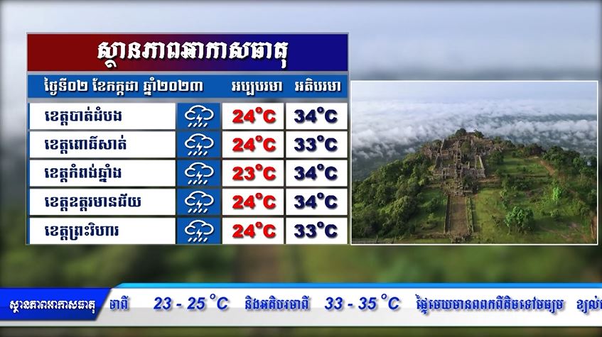 ព្យាករណ៍អាកាសធាតុ សម្រាប់ថ្ងៃទី០២ កក្កដា ២០២៣ (មានវីដេអូ)