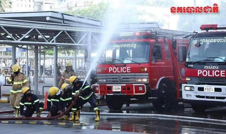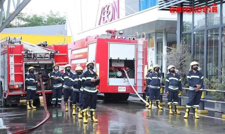 កម្លាំងនគរបាលពន្លត់អគ្គិភ័យ ធ្វើ លំហាត់សមយុទ្ធ នៅក្នុងបរិវេណ ផ្សារទំនើប អុីអន ម៉ល ទី១