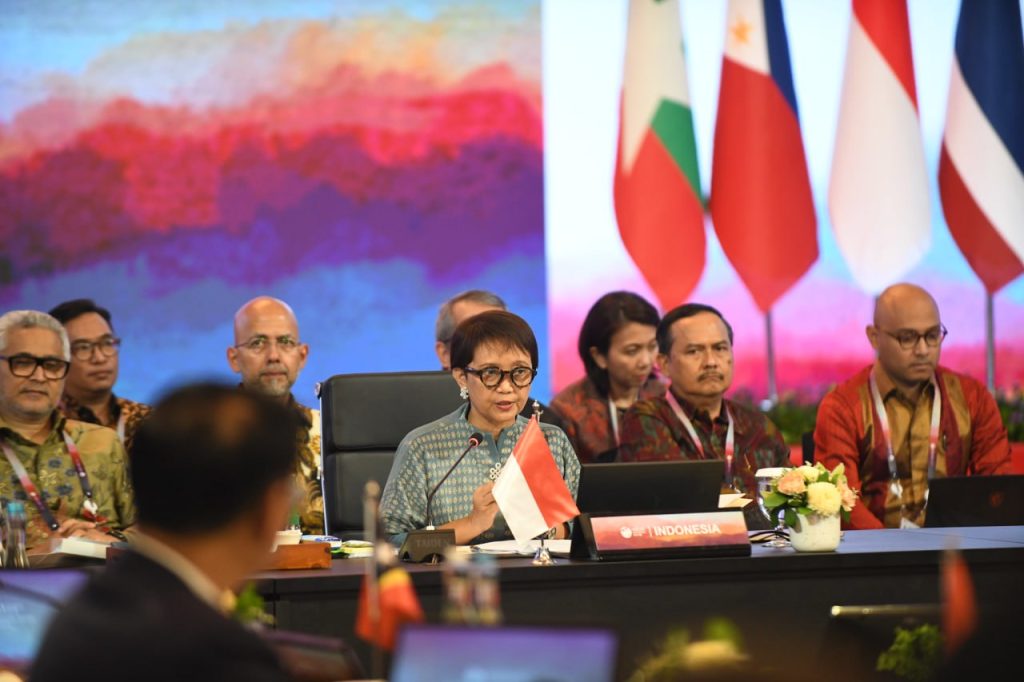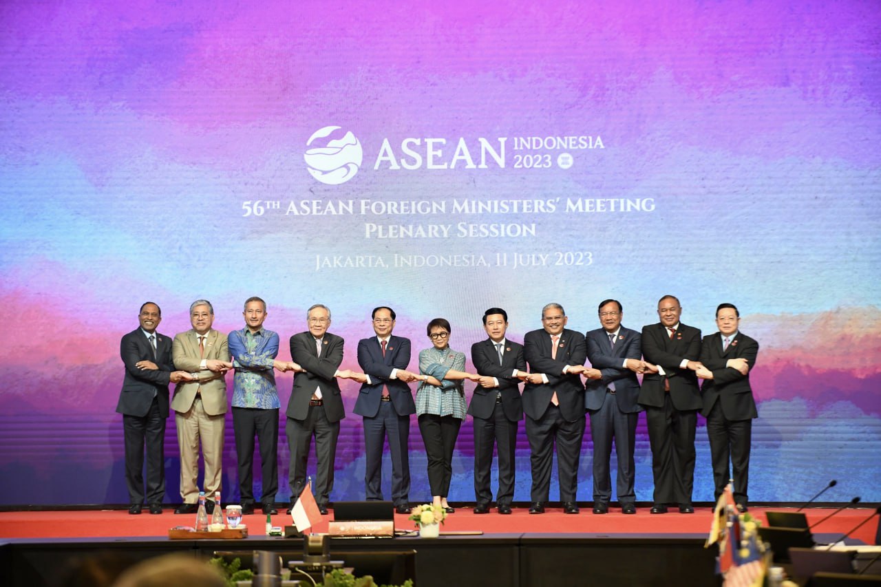 នៅក្នុងកិច្ចប្រជុំរដ្ឋមន្ត្រីការបរទេសអាស៊ានលើកទី៥៦ រដ្ឋមន្ត្រីការបរទេសអាស៊ានបានពិភាក្សាអំពីកិច្ចខិតខំប្រឹងប្រែងក្នុងការកសាងសហគមន៍អាស៊ាន នៅក្នុងបរិបទវិវឌ្ឍន៍នៃនិម្មាបនកម្មតំបន់ ក្រោមមូលបទ “សារៈសំខាន់អាស៊ាន៖ ស្នូលនៃកំណើន” និងអាទិភាពរបស់ឥណ្ឌូនេស៊ី ដែលផ្តោតលើទស្សនវិស័យអាស៊ានស្តីពីឥណ្ឌូ-បាស៊ីហ្វិក (AOIP)1 កិច្ចប្រជុំបានស្វាគមន៍នូវវឌ្ឍនភាពនៃការសម្រេចបានសមិទ្ធផលរបស់អាស៊ានសម្រាប់ឆ្នាំ ២០២៣ ដែលរួមមាន វឌ្ឍនភាពក្នុងការរៀបចំចក្ខុវិស័យសហគមន៍អាស៊ានឆ្នាំ២០៤៥ ការពង្រឹងសមត្ថភាពនិងប្រសិទ្ធភាពស្ថាប័នអាស៊ាន និងការគាំទ្រទីម័រឡេស្តេឱ្យក្លាយជាសមាជិកពេញសិទ្ធិរបស់អាស៊ាន។