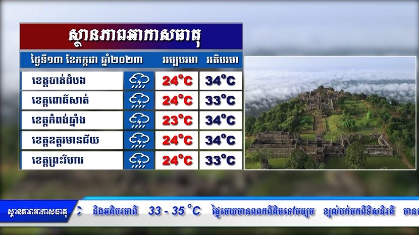 ព្យាករណ៌អាកាសធាតុ សម្រាប់ថ្ងៃទី១៣ កក្កដា ២០២២ (មានវីដេអូ)