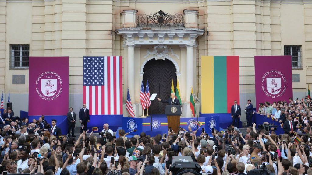 ប្រធានាធិបតីអាមេរិក លោក ចូ បៃដិន បានប្រាប់អ្នកគាំទ្ររបស់ខ្លួននៅទីក្រុងវីលនីញូសថា ប្រធានាធិបតីរុស្ស៊ី លោក វ្ល៉ាឌីមៀ ពូទីន នៅតែលេងល្បែងភ្នាល់ដ៏អាក្រក់មួយ នោះគឺគិតថា លោកខាងលិចនឹងបោះបង់ចោលអ៊ុយក្រែន ដែលកំពុងតស៊ូប្រឆាំងនឹងការឈ្លានពានរបស់រុស្ស៊ី។ លោក បៃដិន បន្តថា លោក ពូទីន នៅតែជឿជាក់ខុសថា រុស្ស៊ីនឹងអាចយកឈ្នះសង្គ្រាមនៅអ៊ុយក្រែនបាន។