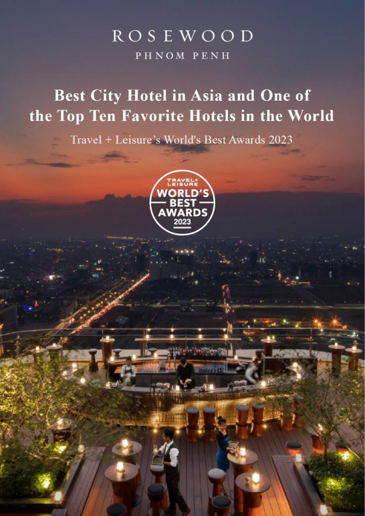 ភ្នំពេញ៖ សណ្ឋាគារ រ៉ូសវូដ ភ្នំពេញ បានទទួលពានរង្វាន់ “សណ្ឋាគារល្អបំផុតនៅអាស៊ី” ពី Travel + Leisure’s Luxury Awards Asia Pacific ឆ្នាំ ២០២៣។ ពានរង្វាន់នេះ ក៏ឆ្លុះបញ្ជាំងឱ្យឃើញផងដែរថា រ៉ូសវូដកំពុងក្លាយជាសណ្ឋាគារមួយដែលកំពុងតែមានប្រជាប្រិយភាពខ្លាំង ហើយក៏ជាគោលដៅស្នាក់នៅដ៏ទាក់ទាញមួយនៅក្នុងប្រទេសកម្ពុជា។