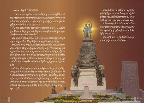 វិមាននេះមានកម្ពស់សរុប ១២,៣០ ម៉ែត្រ ក្នុងនោះខឿនកម្ពស់ ១,៧០ម៉ែត្រ, ជើងកោសកម្ពស់ ៣,២០ម៉ែត្រ, តួកណ្តឹងធ្វើពីស្ពាន់កម្ពស់ ៤,៦០ម៉ែត្រ និងរូបបដិមាទាហានខ្មែរ និងបារាំង កម្ពស់ ២,៨០ម៉ែត្រ។ ក្រុមការងារបច្ចេកទេសបានយកបំណែកលោហធាតុដែលនៅសេសសល់ពីការបែកបាក់ ផ្គុំគ្នាជាមួយនឹងរូបដែលធ្វើបំពេញថ្មី ដើម្បីរក្សាបាននូវតម្លៃអភិរក្ស និងភាពជាប្រវត្តិសាស្ត្រ។