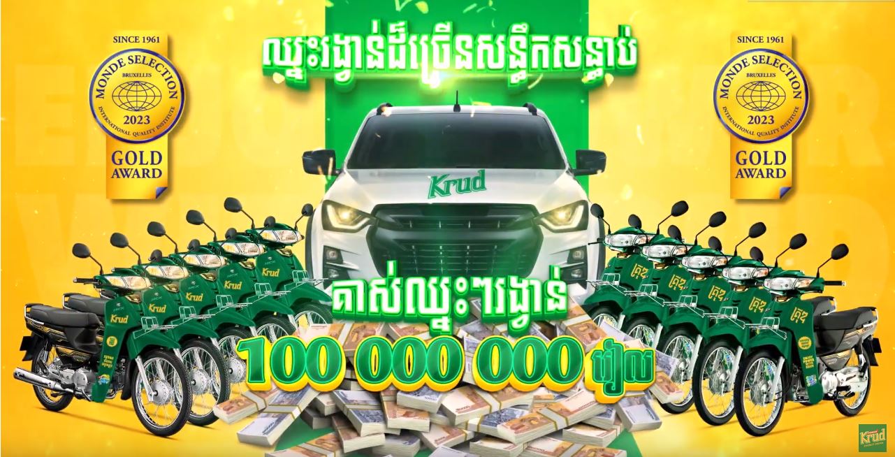 មិនត្រឹមតែជាភេសជ្ជៈប៉ូវកម្លាំងដែលមានគុណភាព និងទទួលបានពានរង្វាន់មេដាយមាសបញ្ជាក់ពីគុណភាពល្អប្រណិតពីកម្មវិធី Monde Selection Awards ឆ្នាំ ២០២៣ ប៉ុណ្ណោះទេ ភេសជ្ជៈប៉ូវកម្លាំង គ្រុឌ និងគ្រុឌអាយស៍ នឹងផ្តល់មហារង្វាន់ដ៏ច្រើនសន្ធឹកសន្ធាប់ជូនដល់អតិថិជនរបស់យើងគ្រប់ទិសទីទូទាំងប្រទេសកម្ពុជា។